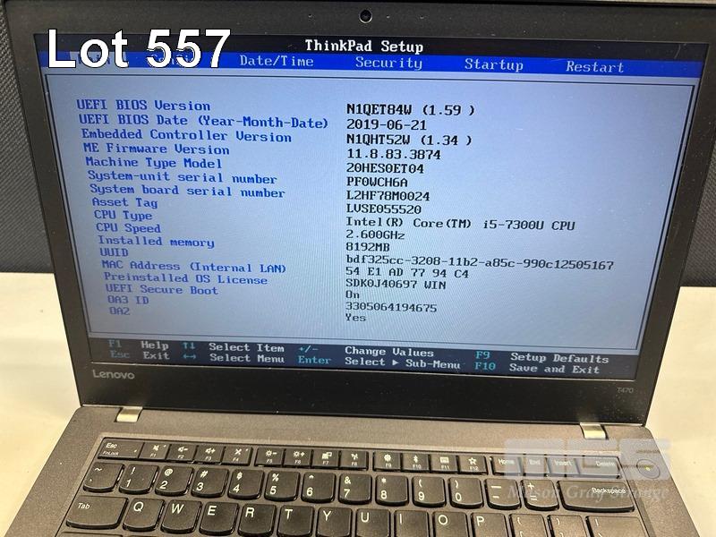 LAPTOP, LENOVO THINKPAD T470, TYPE 20HE, CORE i5 7300U (7TH GEN) @ 2.6GHz, 8GB DDR4 RAM, 256GB NVMe M.2 SSD, 14" WIDESCREEN (1366x768), INTEL HD VIDEO, Wi-Fi, BLUETOOTH, WINDOWS 10 PRO INSTALLED & POWER SUPPLY (NOTE: BATTERY 1 NOT CHARGING) S/N:PF0WCH6A