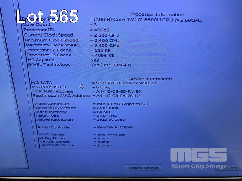 LAPTOP, DELL LATITUDE 7480, CORE i7 6600U (6TH GEN) @ 2.6GHz, 16GB DDR4 RAM, 512GB M.2 SSD, 14" WIDESCREEN (1920x1080), INTEL HD GRAPHICS 520, Wi-Fi, BLUETOOTH, WINDOWS 10 HOME INSTALLED (NO POWER SUPPLY) (NOTE: BATTERY NOT HOLDING CHARGE, MARKS ON SCREEN) S/N:5RJ5PH2