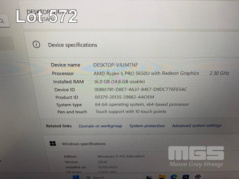 LAPTOP, LENOVO THINKPAD L14 Gen2, TYPE 20X6, AMD RYZEN 5 PRO 5650U @ 2.3GHz, 16GB DDR4 RAM, 256GB NVMe M.2 SSD, 14" TOUCHSCREEN (1920x1080), Wi-Fi, BLUETOOTH, WINDOWS 11 PRO EDUCATION INSTALLED (NO USB-C POWER SUPPLY) (NOTE: MISSING ARROW KEY, MINOR MARKS ON SCREEN) S/N:PF3KASGK