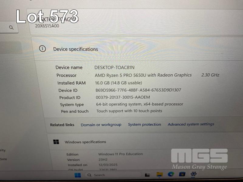 LAPTOP, LENOVO THINKPAD L14 Gen2, TYPE 20X6, AMD RYZEN 5 PRO 5650U @ 2.3GHz, 16GB DDR4 RAM, 256GB NVMe M.2 SSD, 14" TOUCHSCREEN (1920x1080), Wi-Fi, BLUETOOTH, WINDOWS 11 PRO EDUCATION INSTALLED (NO USB-C POWER SUPPLY) (NOTE: DAMAGE TO CASING, MARKS ON SCREEN) S/N:PF3GR97D