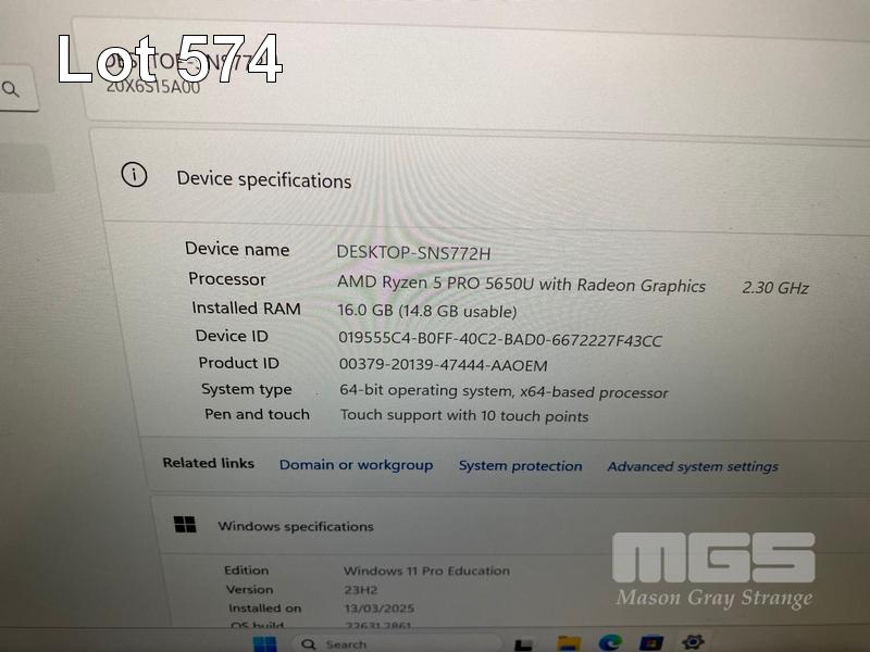 LAPTOP, LENOVO THINKPAD L14 Gen2, TYPE 20X6, AMD RYZEN 5 PRO 5650U @ 2.3GHz, 16GB DDR4 RAM, 256GB NVMe M.2 SSD, 14" TOUCHSCREEN (1920x1080), Wi-Fi, BLUETOOTH, WINDOWS 11 PRO EDUCATION INSTALLED (NO USB-C POWER SUPPLY) (NOTE: DAMAGE TO CASING, MARKS ON SCREEN) S/N:PF3K8JFK
