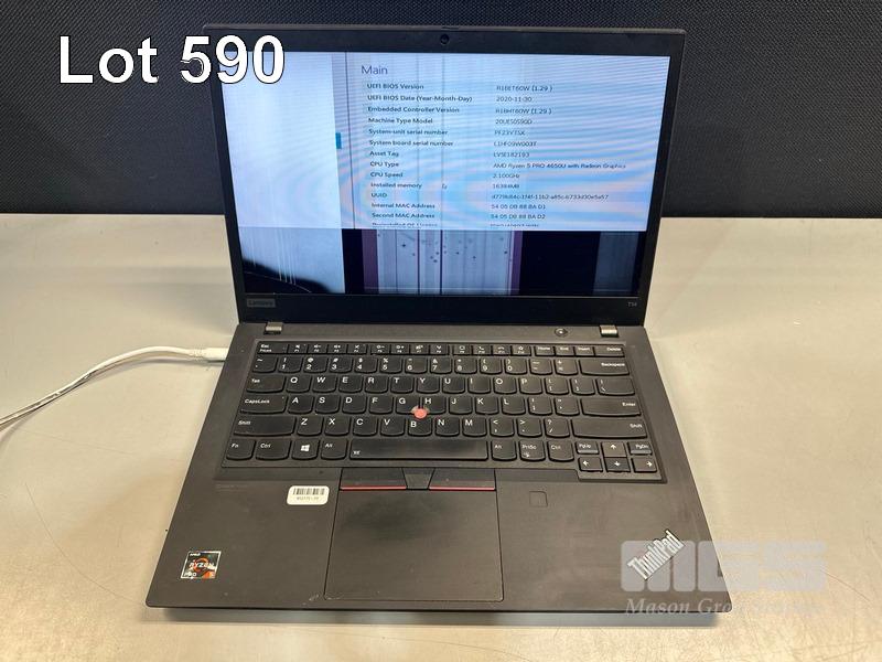 3 x LAPTOPS INC. - LENOVO THINKPAD T14, AMD RYZEN 5 PRO 4650U @ 2.1GHz, 16GB RAM, NO HDD (DAMAGED SCREEN) - LENOVO THINKPAD T14, UNKNOWN, NO HDD (DAMAGED SCREEN) - LENOVO THINKPAD T580, CORE i7 8650U @ 1.9GHz, 8GB RAM, NO HDD (FAULTY, MARKS ON SCREEN) (NO POWER SUPPLIES) S/N:PF23YTSX, PF23YX3E, R90QQ460