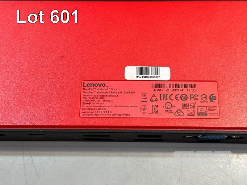 2 x LENOVO THINKPAD THUNDERBOLT 3 DOCKS, TYPE 40AC WITH 135W POWER SUPPLY & USB-C CABLES