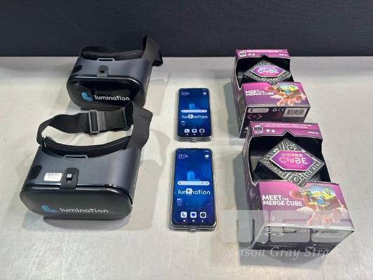 2 x HOMIDO V2 VR HEADSETS, 2 x XIAOMI REDMI NOTE 11 ANDROID SMARTPHONES, 64GB WITH USB-C CABLE, 2 x MERGE CUBES, MODEL ARC-01