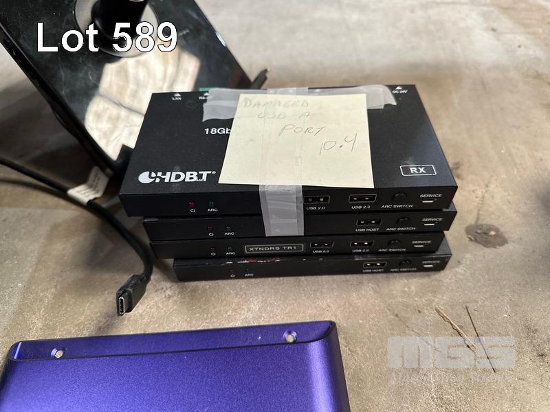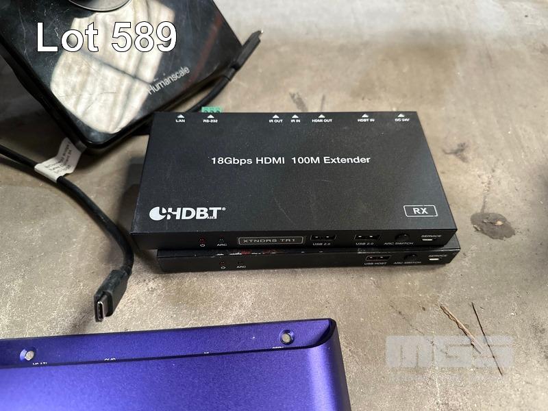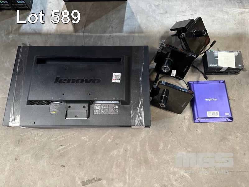 4 x LENOVO LT2432WC 24" LCD MONITORS (NO STANDS) 4 x 18Gbps HDMI 100M EXTENDERS (NO POWER SUPPLIES, 1 x WITH FAULTS) 3 x HUMANSCALE DOCKING STATIONS (INCOMPLETE, NO POWER SUPPLIES) 1 x BRIGHTSIGN XD4, MODEL XD234 I/O PLAYER (NO POWER SUPPLY)