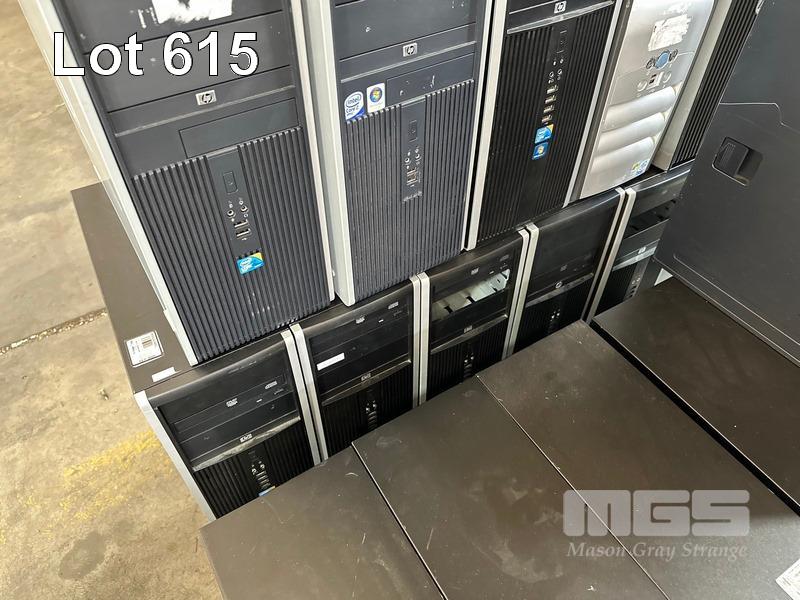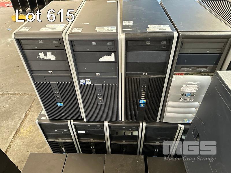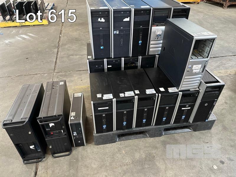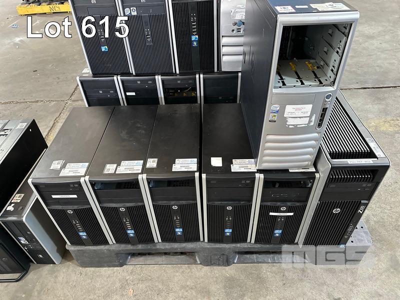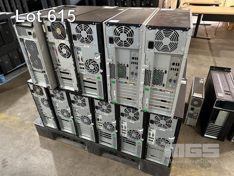 PALLET LOT ASST HP TOWER PCS, NO RAM, NO HDD, MODELS INCLUDE HP COMPAQ 8200 ELITE, HP Z620 WORKSTATION, HP COMPAQ dc7900, HP COMPAQ 8100 ELITE ETC, EMPTY RACKMOUNT CASES (NO CABLES)