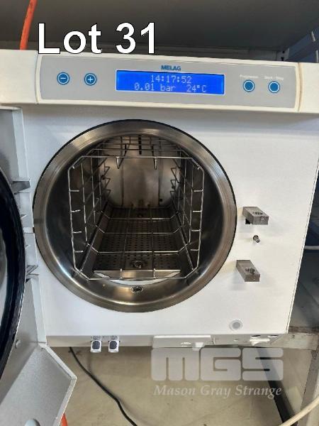 AUTOCLAVE, MELAG TYPE: 235+ S/NO: 0823-S1225 DOM: 2008 22.6 LITRE CAPACITY MAX TEMP: 144 DEGREE CELSIUS 240V