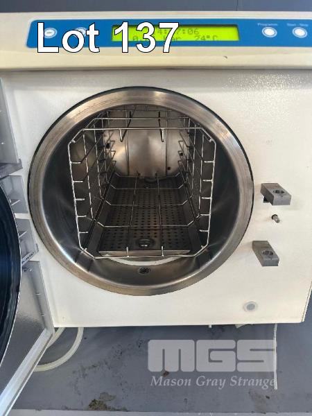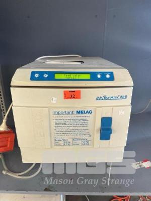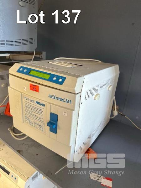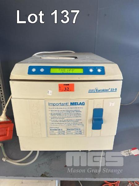 AUTOCLAVE, MELAG TYPE: 23.6 S/NO: 0723-S1273 DOM: 2007 22.6 LITRE CAPACITY MAX TEMP: 144 DEGREE CELSIUS 240V