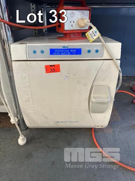 AUTOCLAVE, MELAG TYPE: VACKLAV 23BT S/NO: 1123-B1629 DOM: 2012 22.6 LITRE CAPACITY MAX TEMP: 144 DEGREE CELSIUS 240V