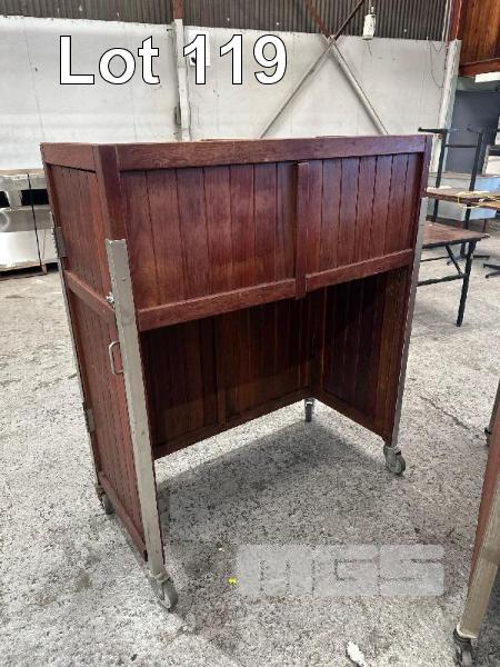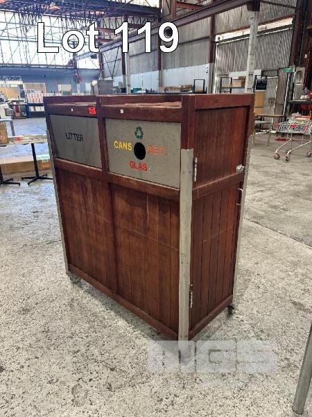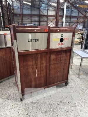 MOBILE BIN STORAGE UNIT, TIMBER/STAINLESS STEEL CONSTRUCTION 1300 x 600 x 1500mm (H)