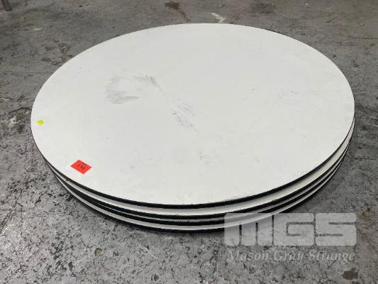 4 x TABLE TOPS, 1200mm DIAMETER, WHITE TIMBER LAMINATE