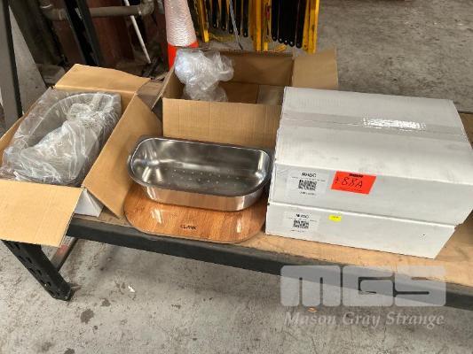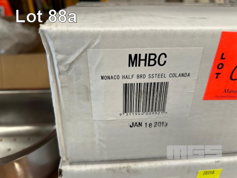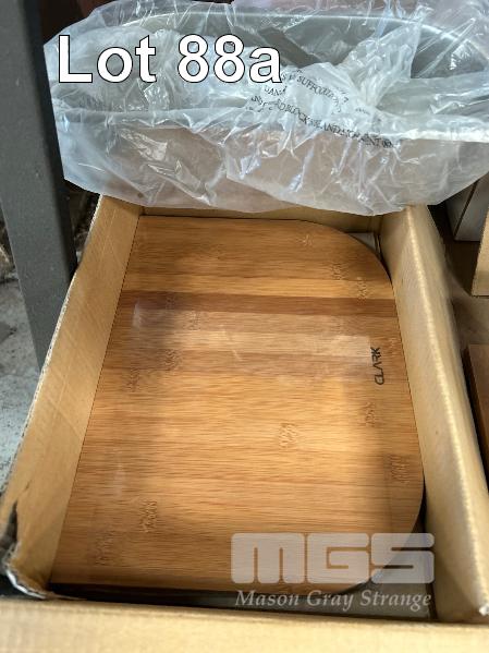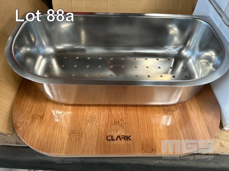 4 x TIMBER CUTTING BOARD AND HALF ROUND STAINLESS STEEL COLANDER CLARK, MONACO MHBC NEW IN BOXES