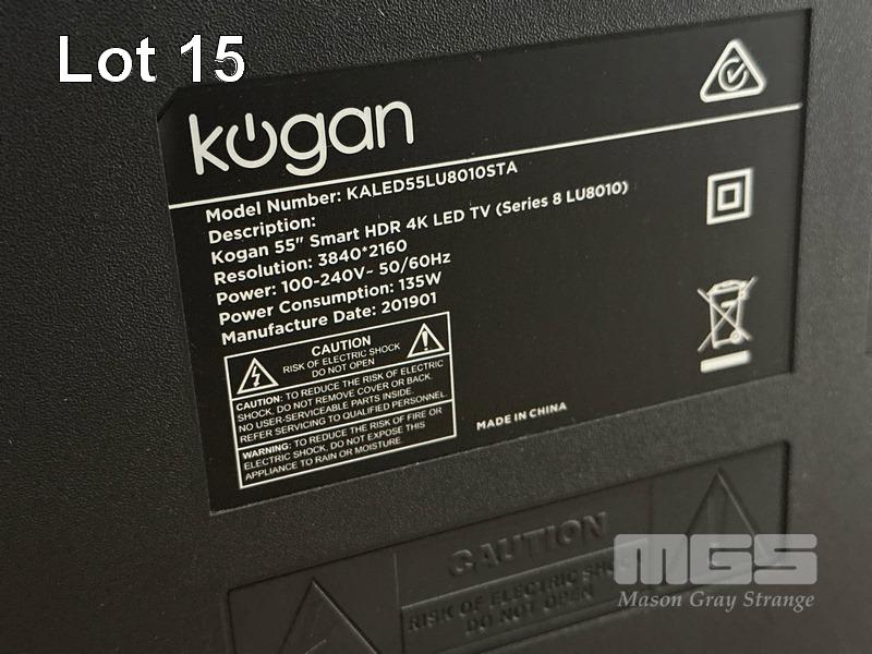 KOGAN 55" SMART 4K LED TV, MODEL KALED55LU8010STA (NO REMOTE) (LOCATED LEVEL 1)
