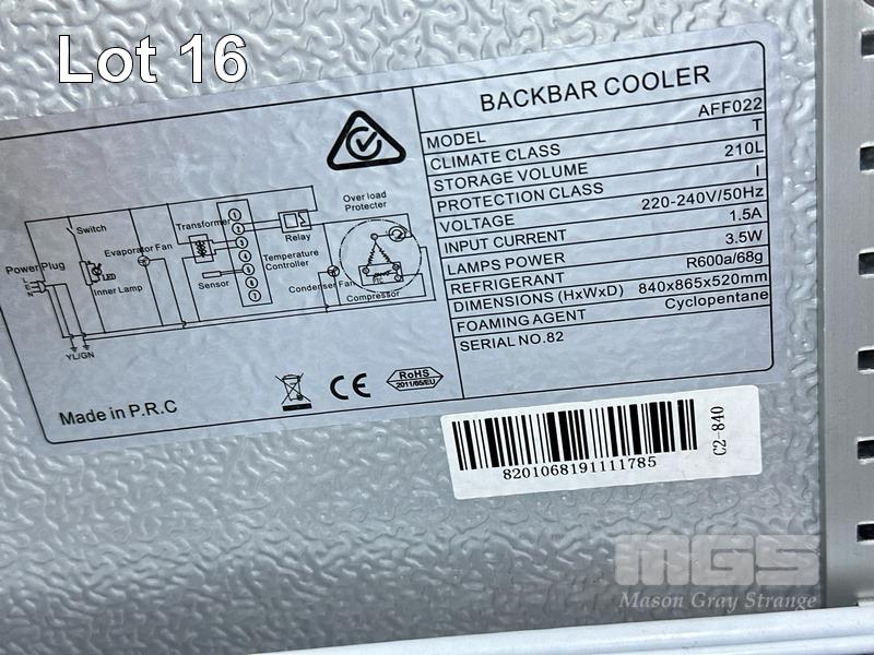AIRFLO 210L DOUBLE DOOR BAR COOLER, MODEL AFF022 (NO KEY)
