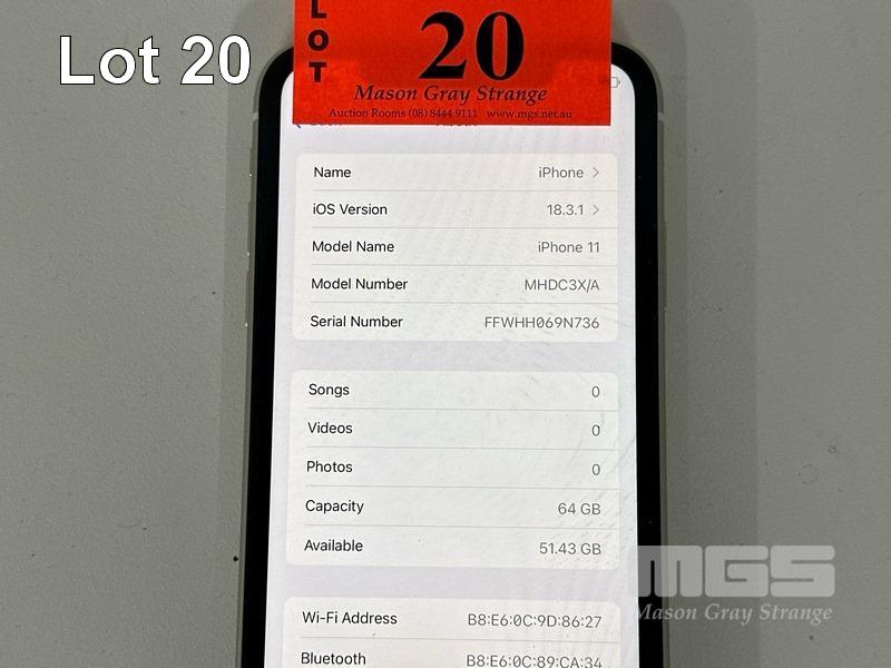 APPLE iPHONE 11, 64GB, MODEL MHDC3X/A, WHITE, BATTERY HEALTH 89%