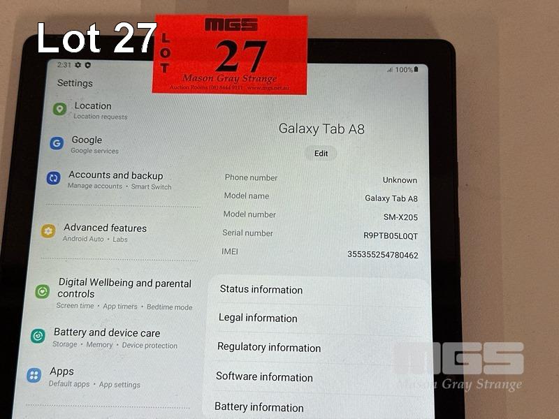 SAMSUNG GALAXY TAB A8 TABLET, SM-X200, 64GB WITH COVER, CABLE & CHARGER