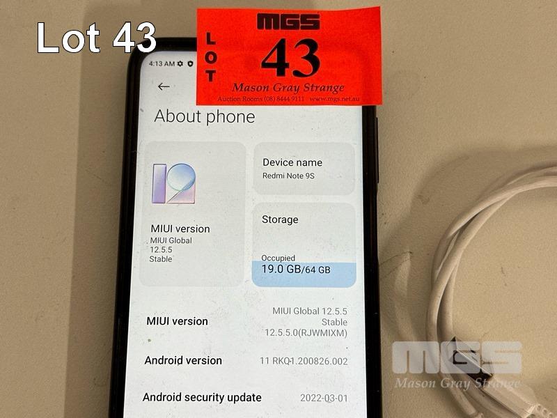 XIAOMI REDMI NOTE 9S ANDROID SMARTPHONE, 64GB WITH USB-C CABLE
