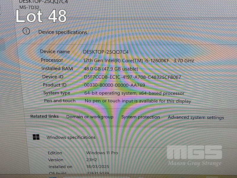 GAMING PC, COOLER MASTER CASE, CORE i5 12600KF @ 3.7GHz, 48GB RAM, 1TB NVMe M.2SSD, 250GB NVMe M.2 SSD, 2TB SATA HDD, 1TB SATA HDD, 20GB AMD RADEON RX 7900 XT VIDEO, MAG Z690 TOMAHAWK MOTHERBOARD, WINDOWS 11 PRO INSTALLED (NO PRODUCT KEY)