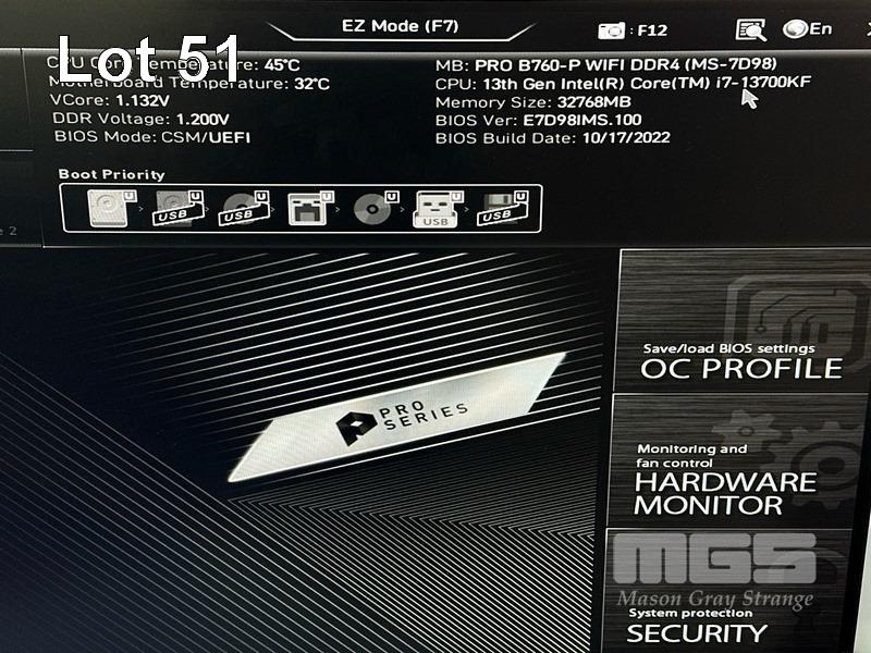 GAMING PC, DEEP COOL CASE, CORE i7 13700K @ 3.4GHz, 32GB RAM, 2TB NVMe M.2 SSD, 20GB AMD RADEON RX 7900 XT VIDEO, MSI PRO B760-P MOTHERBOARD, RM750x PSU, WINDOWS 11 PRO INSTALLED (NO PRODUCT KEY) S/N:L175271