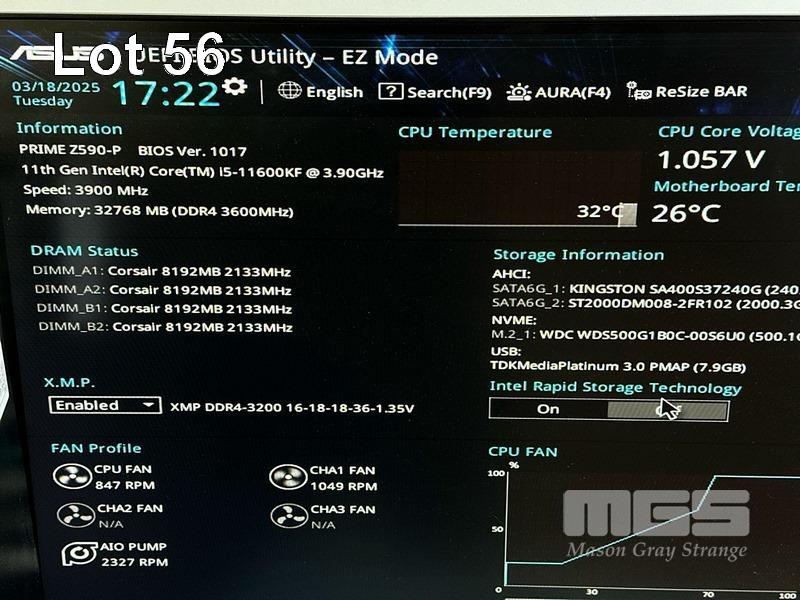 GAMING PC, COOLER MASTER CASE, CORE i5 11600KF @ 3.9GHz, 16GB RAM, 500GB NVMe M.2 SSD, 240GB SSD, 2TB SATA HDD, 12GB AMD RADEON RX 6700 XT VIDEO, ASUS PRIME Z590-P MOTHERBOARD, WINDOWS 11 PRO INSTALLED (NO PRODUCT KEY)