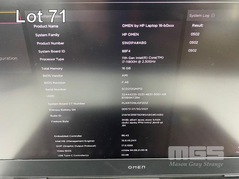 GAMING LAPTOP, HP OMEN 16-b0158TX, CORE i7 11800H @ 2.3GHz, 16GB RAM, 1TB NVMe M.2 SSD, 6GB NVIDIA GEFORCE RTX 3060 VIDEO, WINDOWS 11 HOME INSTALLED & POWER SUPPLY
