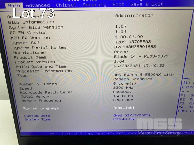 GAMING LAPTOP, RAZER BLADE 14, RZ09-0370, AMD RYZEN 9 5900HX @ 3.3GHz, 16GB RAM, 1TB NVMe M.2 SSD, 8GB NVIDIA GEFORCE RTX 3070 VIDEO, WINDOWS 10 HOME INSTALLED & POWER SUPPLY
