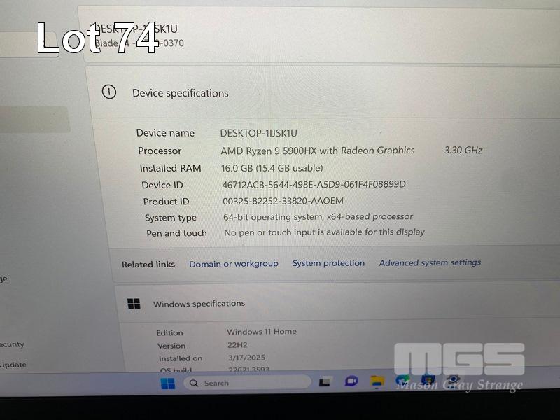 GAMING LAPTOP, RAZER BLADE 14, RZ09-0370, AMD RYZEN 9 5900HX @ 3.3GHz, 16GB RAM, 1TB NVMe M.2 SSD, 8GB NVIDIA GEFORCE RTX 3070 VIDEO, WINDOWS 11 HOME INSTALLED & POWER SUPPLY