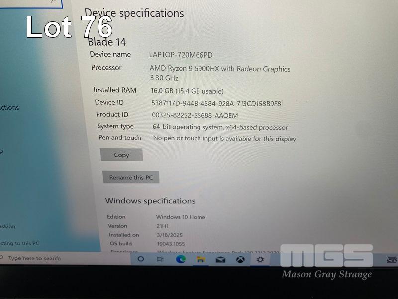 GAMING LAPTOP, RAZER BLADE 14, RZ09-0370, AMD RYZEN 9 5900HX @ 3.3GHz, 16GB RAM, 1TB NVMe M.2 SSD, 8GB NVIDIA GEFORCE RTX 3070 VIDEO, WINDOWS 10 HOME INSTALLED & POWER SUPPLY