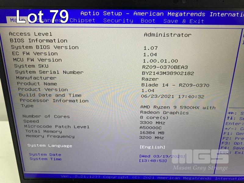 GAMING LAPTOP, RAZER BLADE 14, RZ09-0370, AMD RYZEN 9 5900HX @ 3.3GHz, 16GB RAM, 1TB NVMe M.2 SSD, 8GB NVIDIA GEFORCE RTX 3070 VIDEO, WINDOWS 10 HOME INSTALLED & POWER SUPPLY