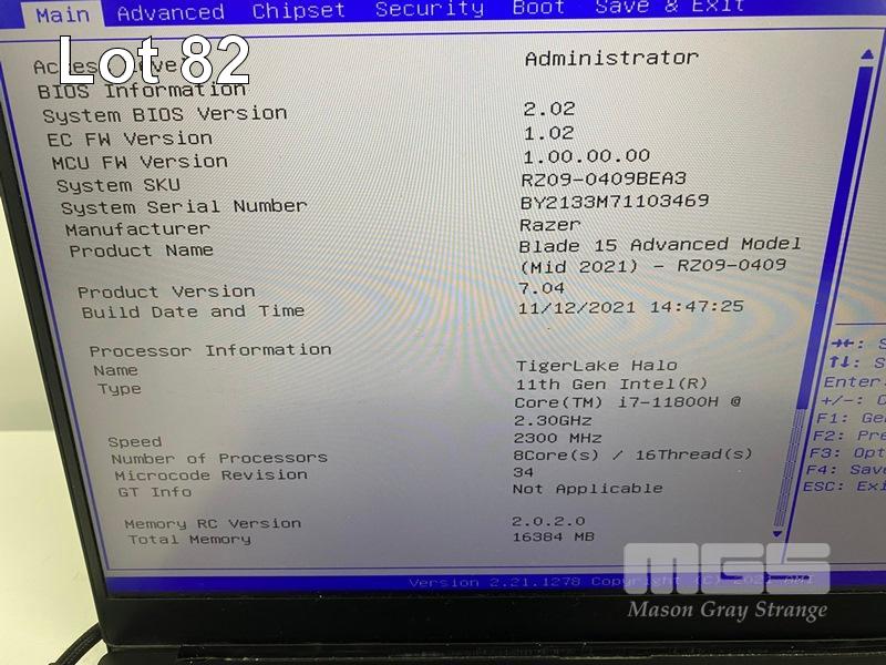 GAMING LAPTOP, RAZER BLADE 15, RZ09-0409, CORE i7 11800H @ 2.3GHz, 16GB RAM, 1TB NVMe M.2 SSD, 8GB NVIDIA GEFORCE RTX 3070 VIDEO, WINDOWS 10 HOME INSTALLED & POWER SUPPLY (NOTE: NO BATTERY)