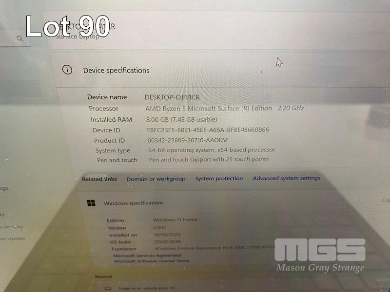LAPTOP, MICROSOFT SURFACE 4, MODEL 1958, AMD RYZEN 5 @ 2.2GHz, 8GB RAM, 256GB SSD, 13.5" TOUCHSCREEN, WINDOWS 11 HOME INSTALLED & POWER SUPPLY