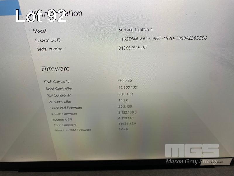 LAPTOP, MICROSOFT SURFACE 4, MODEL 1958, AMD RYZEN 5 @ 2.2GHz, 8GB RAM, 256GB SSD, 13.5" TOUCHSCREEN, WINDOWS 11 HOME INSTALLED & POWER SUPPLY