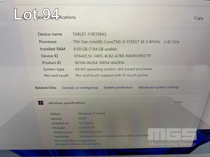 TABLET PC, MICROSOFT SURFACE PRO 8, MODEL 1983, CORE i5 1135G7 @ 2.4GHz, 8GB RAM, 256GB SSD, 13" TOUCHSCREEN, WINDOWS 11 HOME INSTALLED & POWER SUPPLY