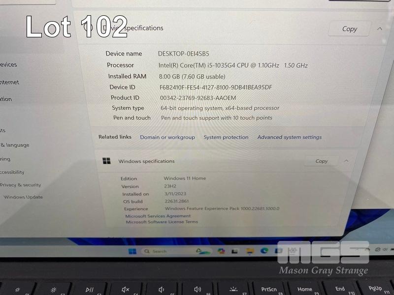 TABLET PC, MICROSOFT SURFACE PRO 7, MODEL 1866, CORE i5 1035G4 @ 1.1GHz, 8GB RAM, 128GB SSD, 12.3" TOUCHSCREEN, WINDOWS 11 HOME INSTALLED & POWER SUPPLY