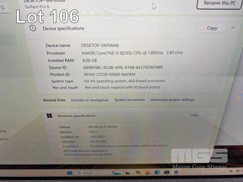 TABLET PC, MICROSOFT SURFACE PRO 6, MODEL 1796, CORE i5 8250U @ 1.6GHz, 8GB RAM, 128GB SSD, 12.3" TOUCHSCREEN, WINDOWS 11 HOME INSTALLED & POWER SUPPLY