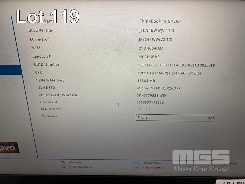 LAPTOP, LENOVO THINKBOOK 14 G4 IAP, TYPE 21DH, CORE i5 1235U @ 1.3GHz, 16GB RAM, 256GB NVMe M.2 SSD, WINDOWS 11 PRO INSTALLED & USB-C POWER SUPPLY