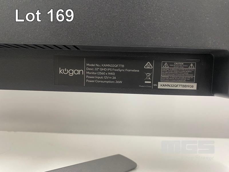 MONITOR, KOGAN 32" QHD IPS FREESYNC 75Hz FRAMELESS, MODEL KAMN32QF7TB WITH POWER SUPPLY