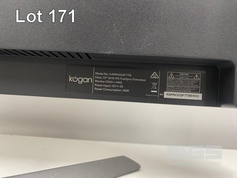 MONITOR, KOGAN 32" QHD IPS FREESYNC 75Hz FRAMELESS, MODEL KAMN32QF7TB WITH POWER SUPPLY