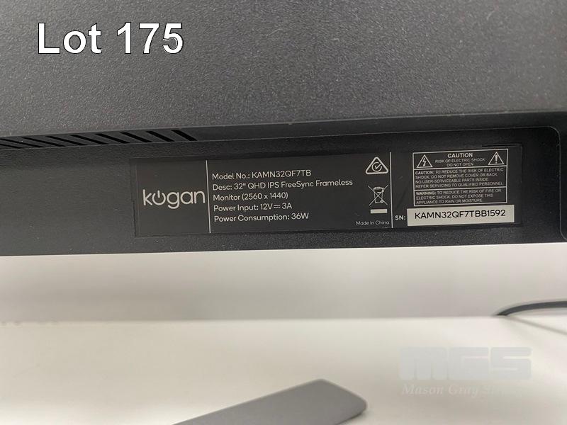 MONITOR, KOGAN 32" QHD IPS FREESYNC 75Hz FRAMELESS, MODEL KAMN32QF7TB WITH POWER SUPPLY