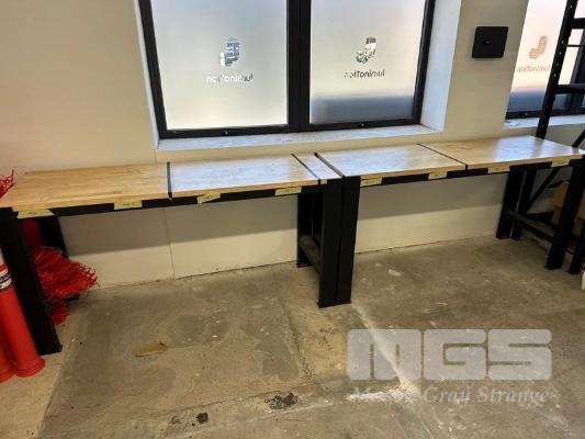2 x BENCHES, LAMINATE TOP, STEEL FRAME, EACH 180 x 60cm
