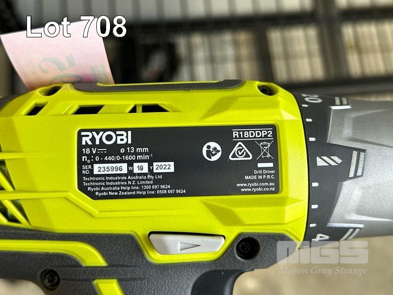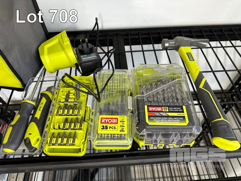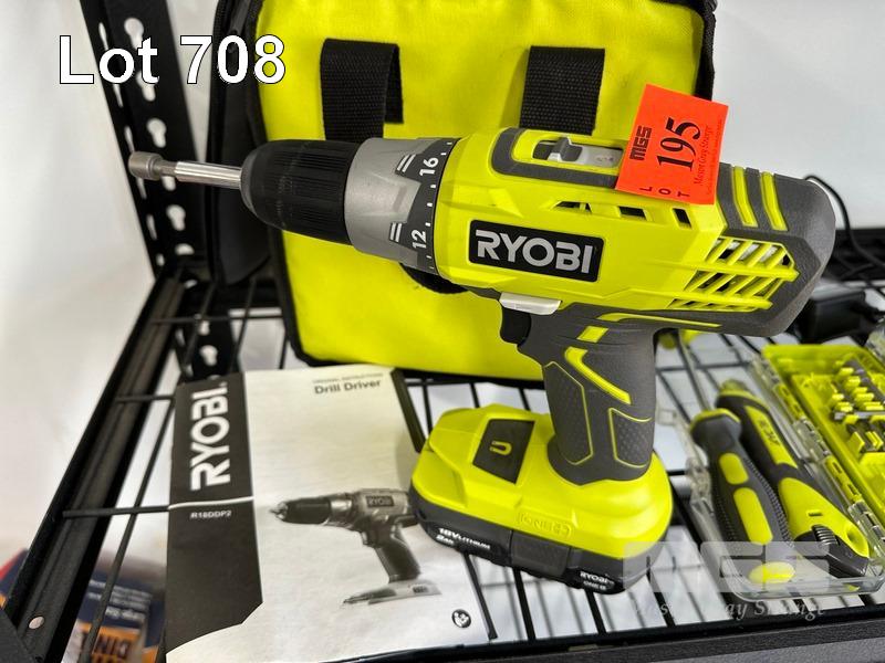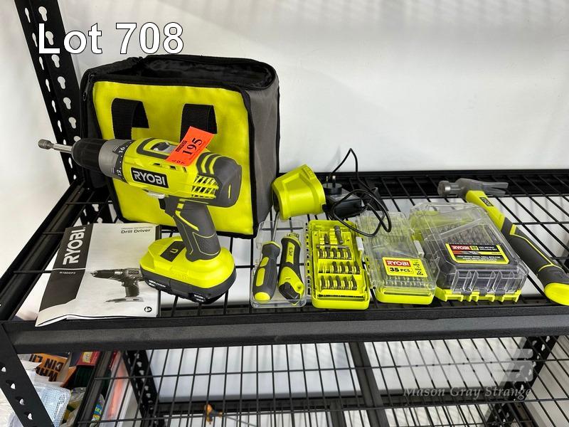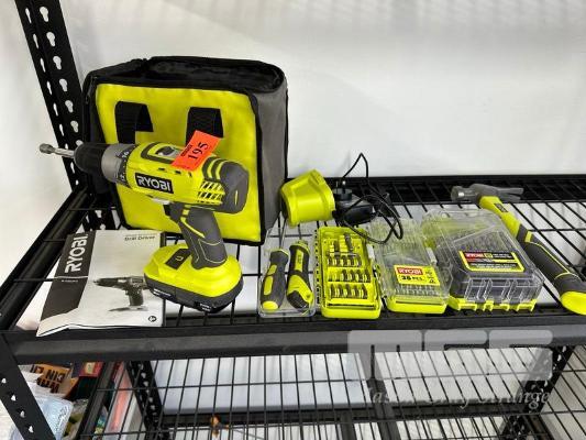 RYOBI 18V DRILL DRIVER, R18DDP2, CHARGER & ASST DRILL BITS