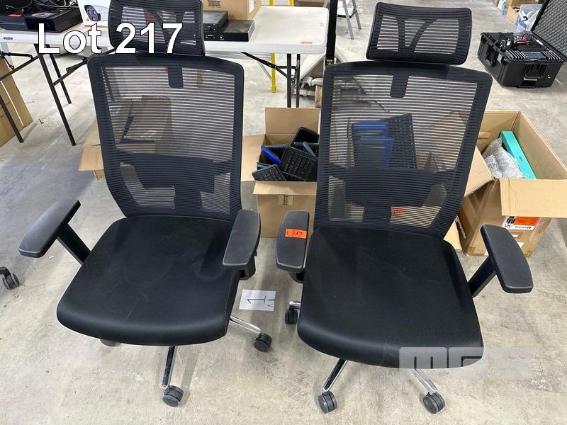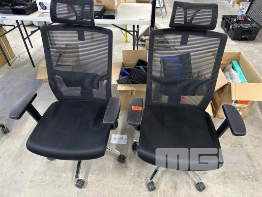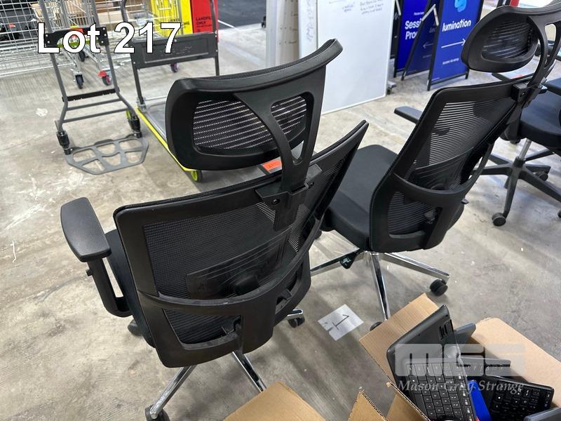 2 x HIGH BACK OFFICE ARM CHAIRS, MESH BACK