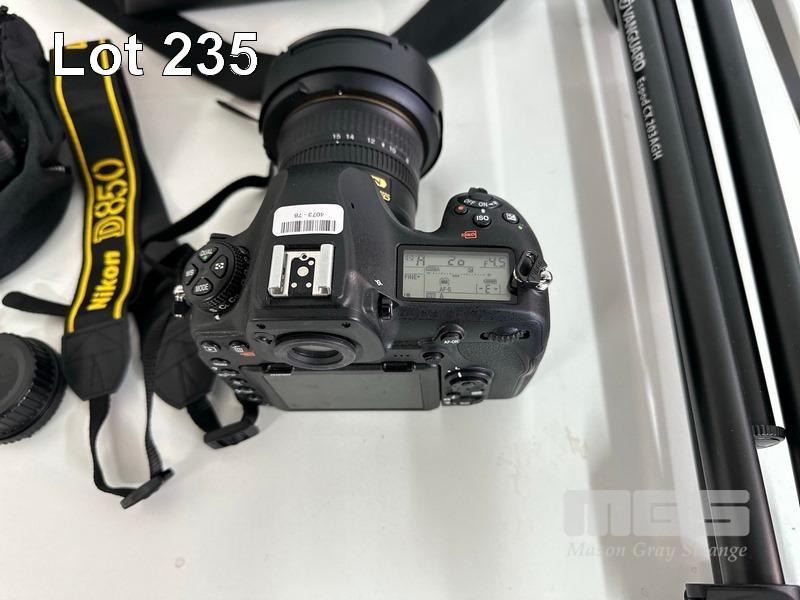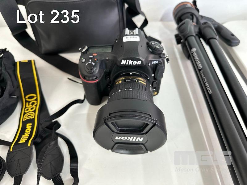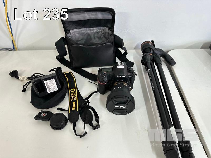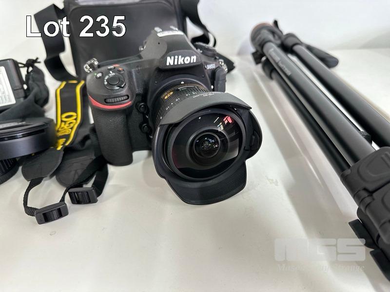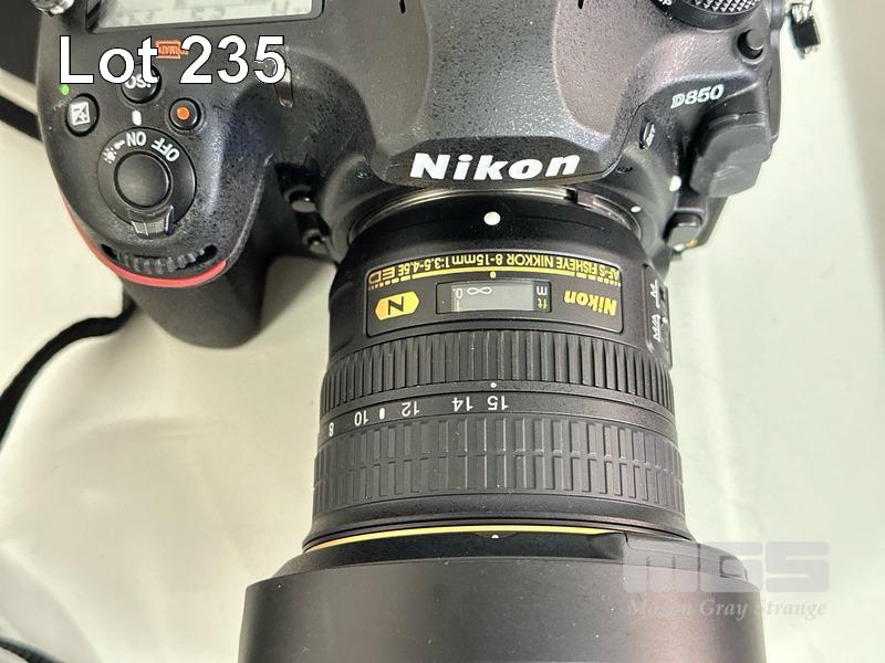 NIKON D850 DIGITAL SLR CAMERA, NIKON FISHEYE NIKKOR 8-15mm f/3.5-4.5E ED LENS, CHARGER, TRIPOD & BAG