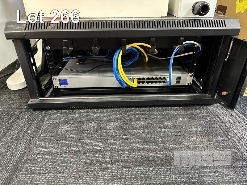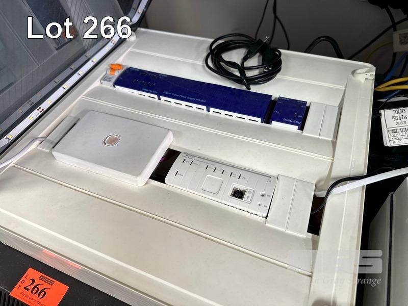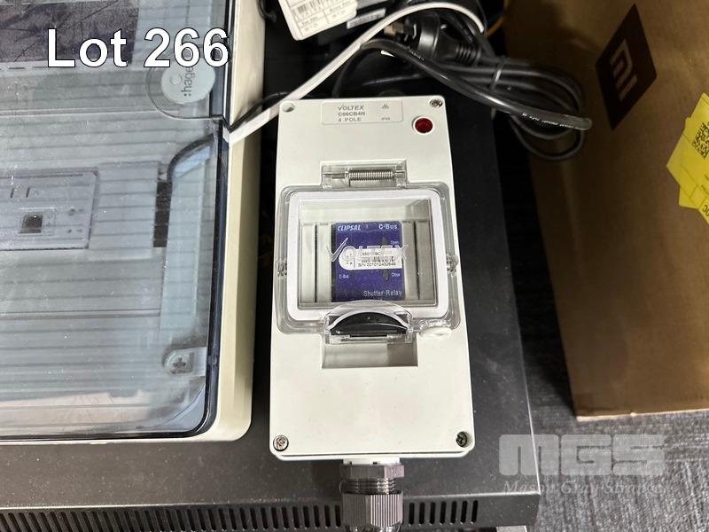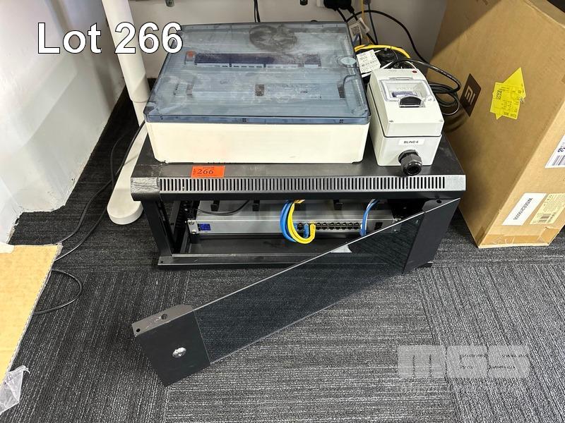 DATA RACK CABINET, 4RU (NO KEY) WITH UBIQUITI USW-24 24-PORT SWITCH, SCHNEIDER ELECTRIC C-BUS NETWORK AUTOMATION CONTROLLER, CLIPSAL C-BUS SHUTTER RELAYS, VOLTEX C66CB4N MCB ENCLOSURE