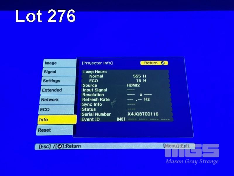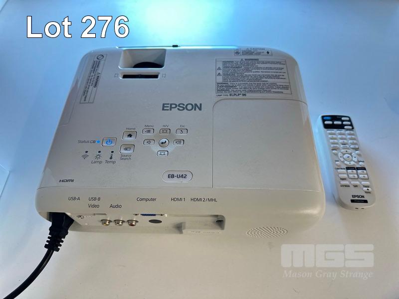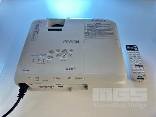 EPSON EB-U42 3LCD PROJECTOR, 555 NORMAL HOURS & 15 ECO HOURS SHOWING WITH REMOTE