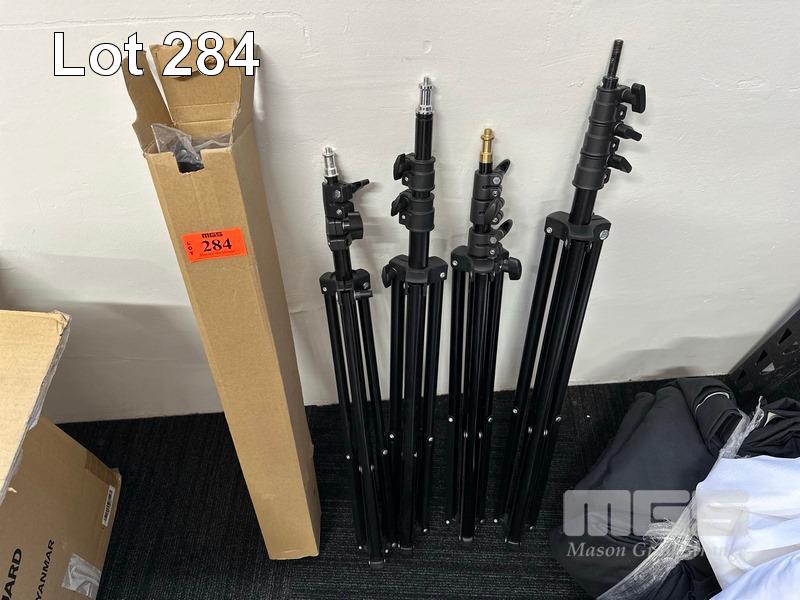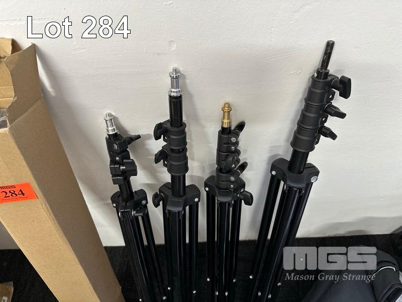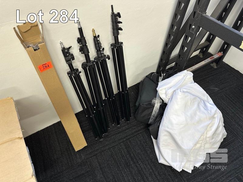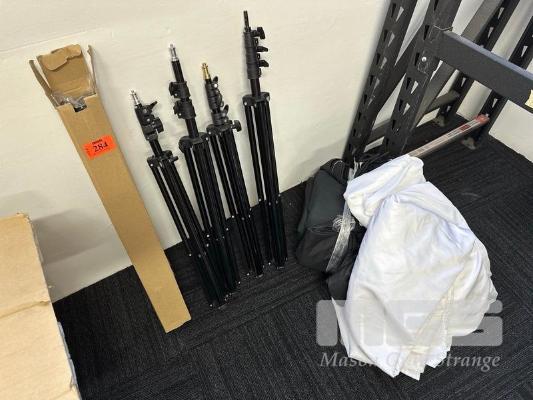 5 x ASST LIGHTING TRIPODS & ASST BACKDROPS