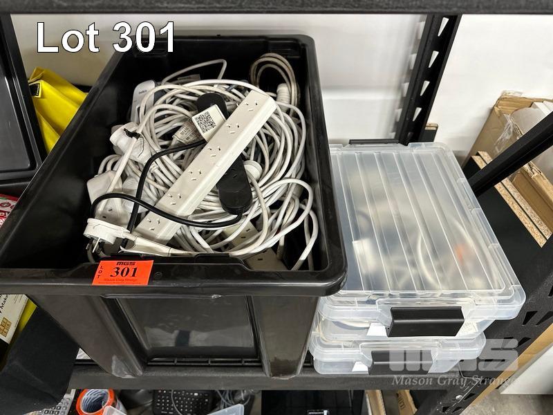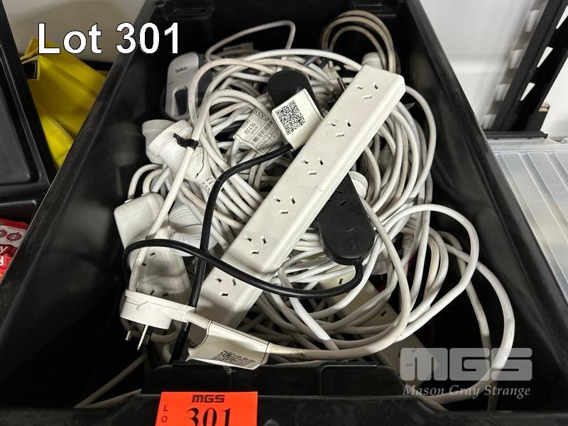 1 x TUB & 2 x SMALL TUBS 240V EXTENSION CORDS & POWER BOARDS