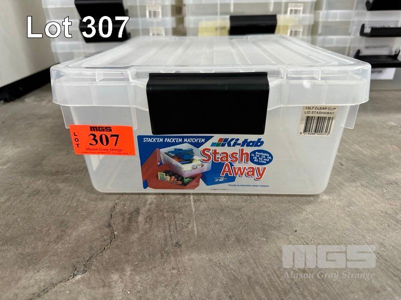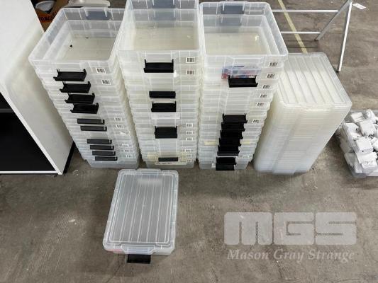 40 x CLEAR PLASTIC TUBS, 10L WITH LIDS