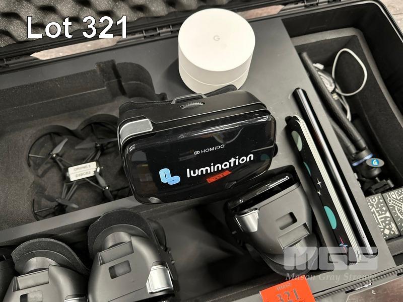 VR EDUCATION KIT COMPRISING 5 x HOMIDO V2 VR HEADSETS, 5 x XIAOMI REDMI NOTE 9 ANDROID SMART PHONES, 1 x GOOGLE NEST WiFi AC1304, 1 x TELLO EDU DRONE, 2 x UBTECH ALPHA MINI ROBOTS 1 x RICOH THETA 360 CAMERA, 1 x SAMSUNG GALAXY TAB A7 TABLET, SM-T500 IN PELICAN 1615 CASE