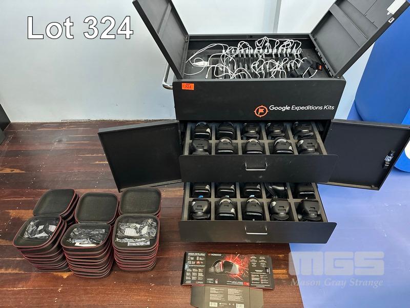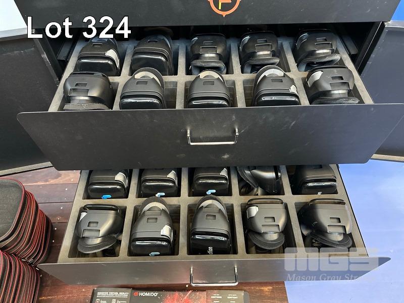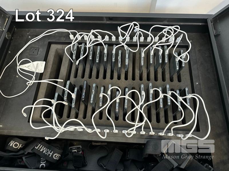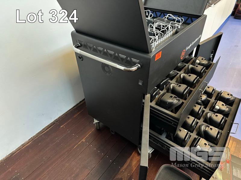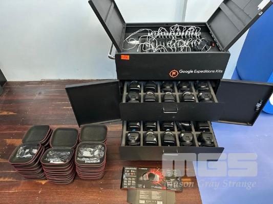 MOBILE VR & SMART PHONE CHARGING TROLLEY (NO KEY) COMPRISING 30 x HOMIDO V2 VR HEADSETS, 30 x CASES, 30 x XIAOMI REDMI NOTE 11 ANDROID SMART PHONES